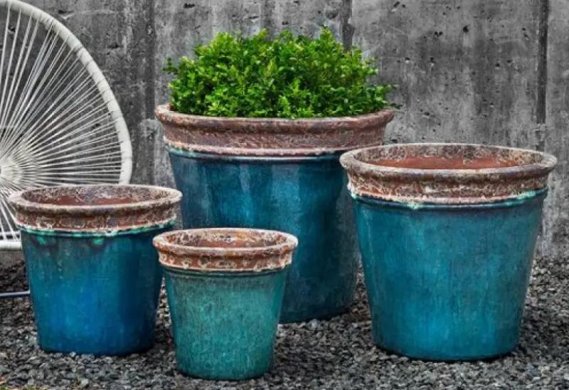Decor w/Coins Pot Falling Aqua XLg